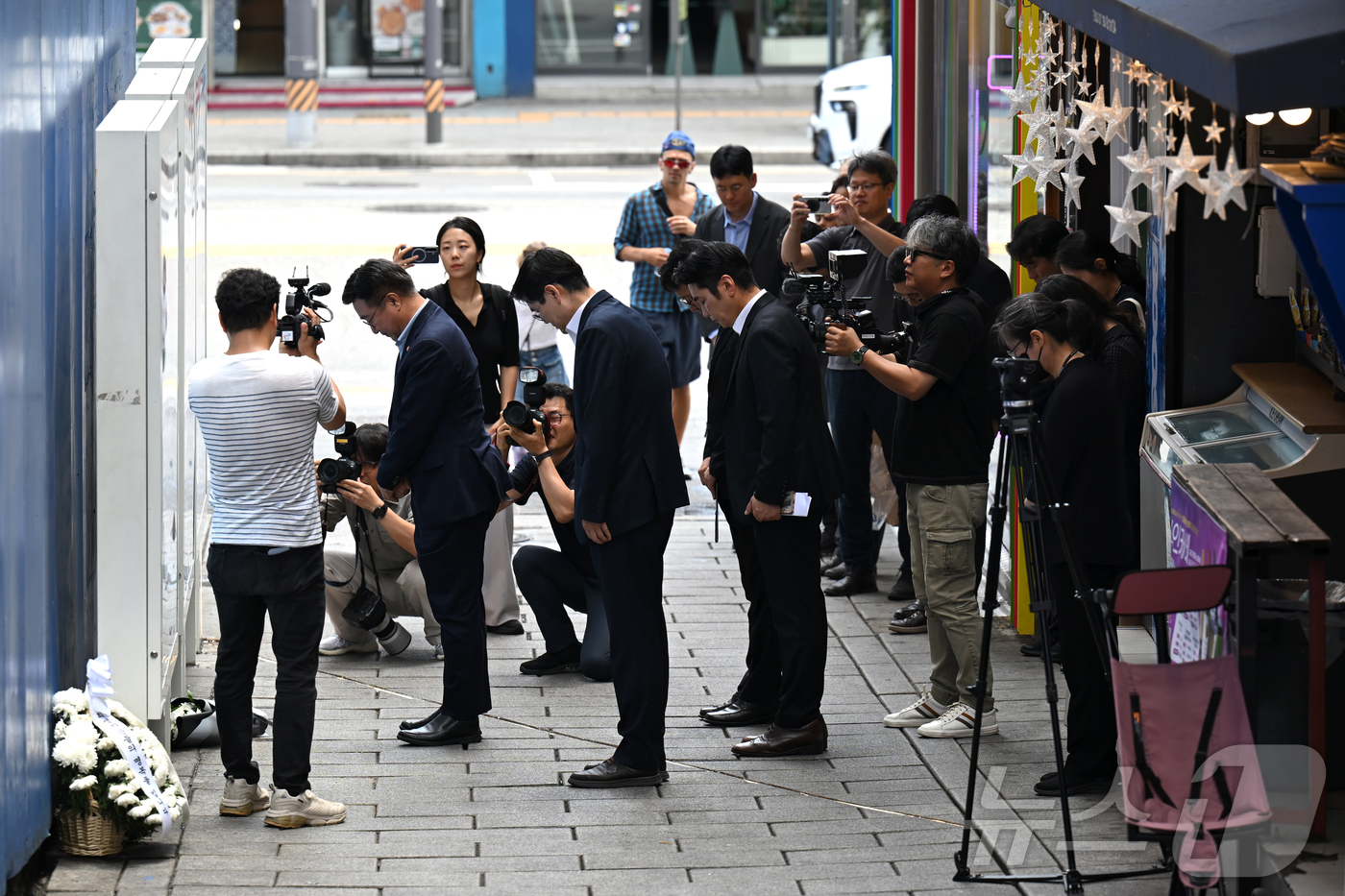 (서울=뉴스1) 민경석 기자 = 윤호중 행정안전부 장관이 4일 오후 서울 용산구 '10.29 기억과 안전의 길'에서 이태원 참사를 추모하고 있다. (공동취재) 2025.8.4/뉴스1