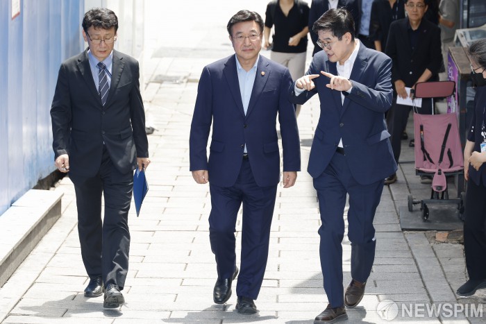 [서울=뉴스핌] 류기찬 인턴기자 = 윤호중 행정안전부 장관이 4일 오후 서울 용산구 이태원 참사 현장인 '10.29 기억과 안전의 길'을 살펴보고 있다. 2025.08.04 ryuchan0925@newspim.com