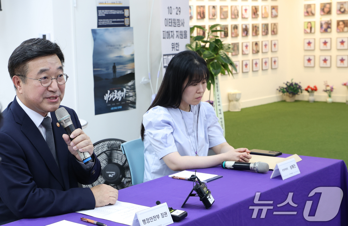 (서울=뉴스1) 권현진 기자 = 윤호중 행정안전부 장관이 4일 오후 서울 종로구 적선동 별들의 집을 방문해 10·29 이태원 참사 희생자 유가족들과 면담을 하고 있다. 2025.8.4/뉴스1