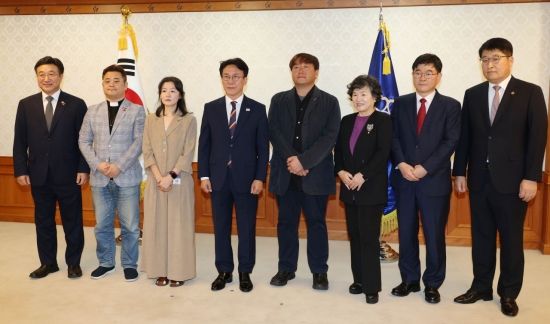 김민석 국무총리가 4일 서울 종로구 정부서울청사에서 열린 이태원 참사 추모위원회 위원 위촉식을 마치고 기념촬영을 하고 있다.