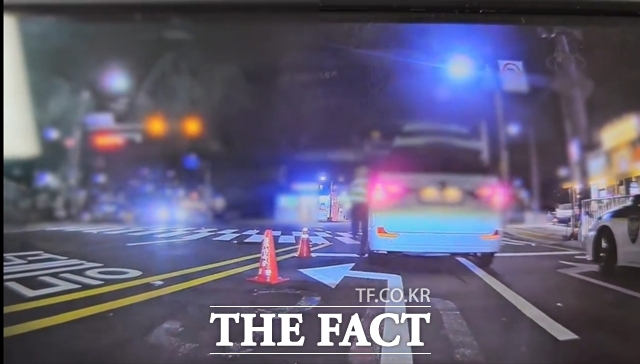 음주단속을 하는 경찰관을 매단 채 달아나는 범행 차량. /부산경찰청 |