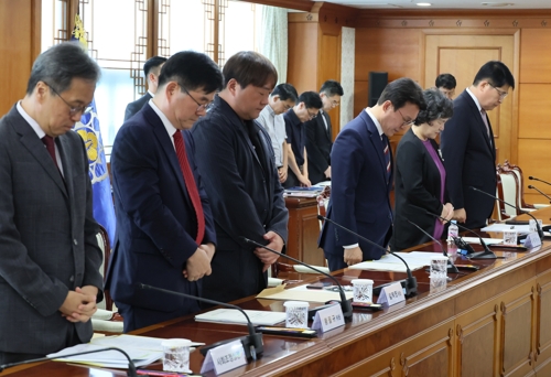 김민석 총리, 이태원 참사 희생자에 대한 묵념 (서울=연합뉴스) 이정훈 기자 = 김민석 국무총리가 4일 서울 종로구 정부서울청사에서 열린 이태원 참사 추모위원회에서 위원들과 함께 참사 희생자에 대한 묵념을 하고 있다. 2025.8.4 uwg806@yna.co.kr (끝) <저작권자(c) 연합뉴스, 무단 전재-재배포, AI 학습 및 활용 금지> |