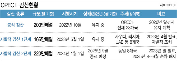 이제 시장의 관심은 OPEC+의 추가 증산 여부다. 감산 조치는 종료됐지만 8개국이 2023년 5월부터 시행한 1단계 자발적 감산(하루 166만 배럴)과 OPEC+ 전체가 따르는 공식 감산(하루 200만 배럴)은 여전히 유지되고 있다.