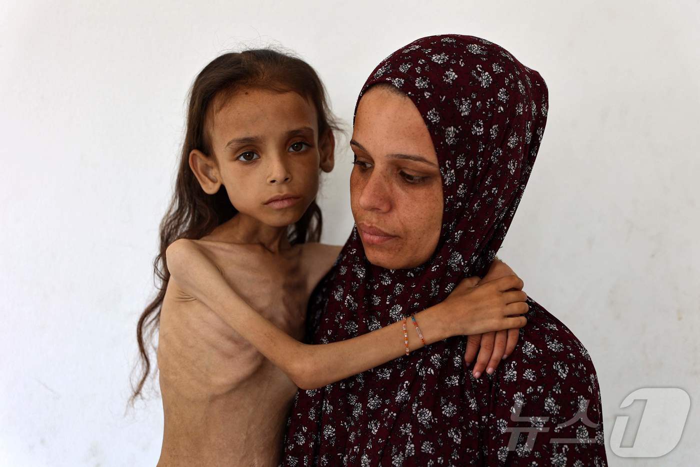 가자지구 식량난으로 영양실조에 걸린 팔레스타인 소녀 마리암 다와스(9)와 어머니. 세계보건기구(WHO)는 이스라엘 봉쇄로 가자지구가 기아 위기를 직면했다고 경고했다. 2025.8.2 ⓒ AFP=뉴스1 ⓒ News1 이지예 객원기자 |