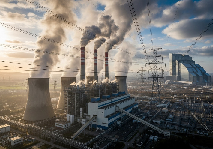 데이터센터와 연결된 발전소가 전력을 생산하는 모습. 구글 AI 스튜디오 캡처 |