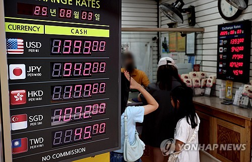 (세종=연합뉴스) 이대희 기자 = 원/달러 환율은 5일 미국 고용 쇼크에 따른 금리 인하 기대감에 하락세로 출발했다.