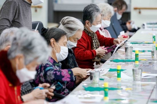6일 서울 성북구 길음데이케어센터에서 어르신들이 만들기 활동을 하고 있다. 일명 '노치원'(노인+유치원)으로 불리는 데이케어센터는 요양시설에 갈 정도는 아니지만, 초기치매 등 노인성질병으로 혼자서 일상생활이 어려운 노령층(장기요양1~5등급)을 돌봐주는 시설이다. 강진형 기자 |