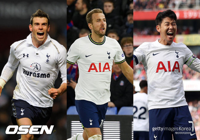 [사진] (왼쪽부터) 가레스 베일, 해리 케인, 손흥민 ⓒGettyimages(무단전재 및 재배포 금지) |