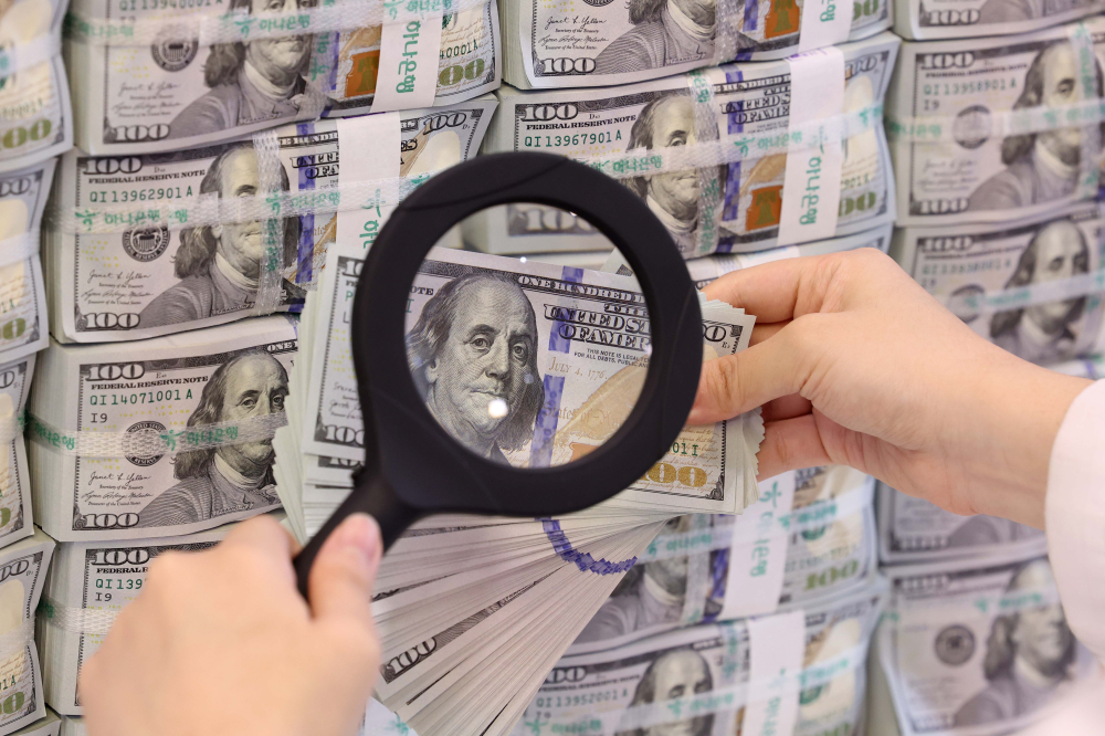 서울 중구 하나은행 위변조대응센터에서 관계자가 달러화를 정리하고 있는 모습. |