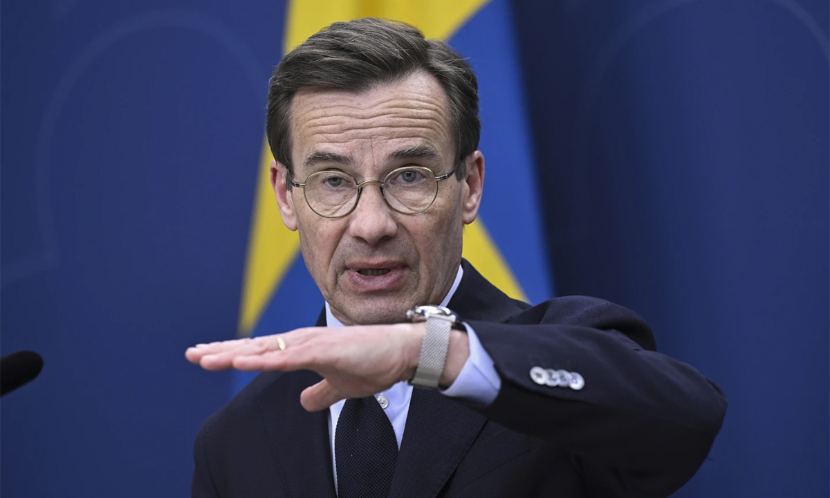 지난 3월 울프 크리스터손 스웨덴 총리가 수도 스톡홀름에서 열린 기자회견에서 국방비 증액을 발표하고 있는 모습. 스톡홀름=AP연합뉴스 |
