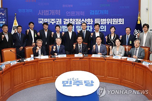 (서울=연합뉴스) 이슬기 오규진 기자 = 더불어민주당이 6일 당내 특위를 가동하고 추석(10월6일) 전에 자칭 검찰개혁 입법을 완료하는 것을 목표로 한 속도전에 들어갔다.