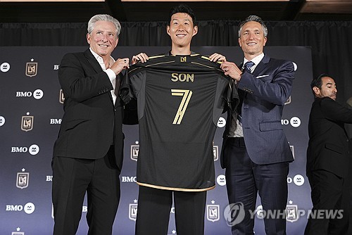 손흥민은 7일(한국시간) 미국 캘리포니아주 LA BMO 스타디움에서 열린 입단 기자회견에서 LAFC 선수로 첫선을 보였다.