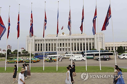 7월 8일 북한 평양 만수대의사당 앞을 지나는 주민들 |
