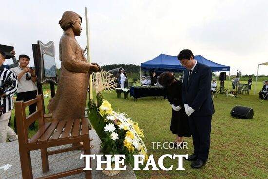기념식은 일본군 위안부 피해자를 다룬 영화 '귀향'의 OST인 '가시리' 공연을 시작으로 △기념사(김숙자 건립추진위원회장) △추념사 △무용극 기림공연 △헌화 △헌시 낭독 △기념촬영 등 순서로 진행된다.
