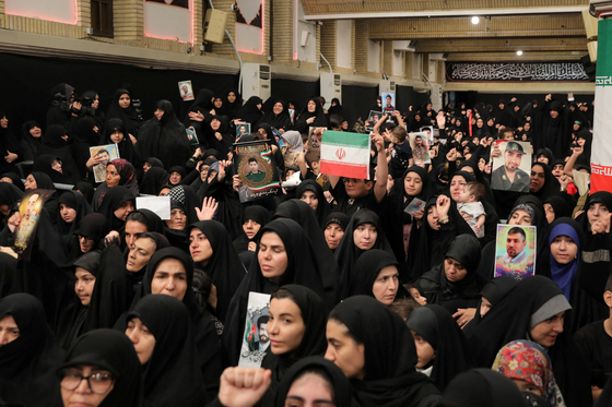 지난 7월 29일(현지시간) 이란 테헤란에서 이스라엘의 공습으로 사망한 이란 군 사령관과 핵 과학자를 위한 국가 장례식이 치러졌다. 로이터=연합뉴스 |