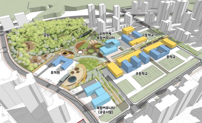 시설에는 주민과 학생이 함께 사용하는 생존수영장, 도서관(유아·어린이·일반), 자기 주도 학습실, 실내 체육활동실과 통합 지하 주차장(복합시설·초·중·고교) 등 다양한 시설이 들어설 예정이다.