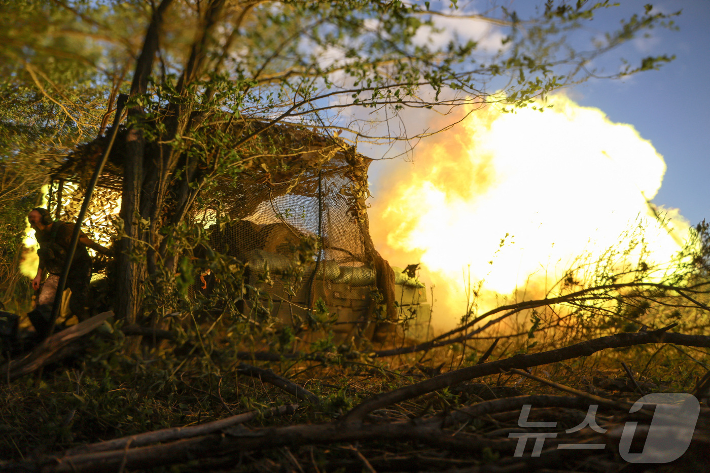 (로이터=도네츠크 뉴스1) 김경민 기자 = 우크라이나군이 5일(현지시간) 우크라이나 도네츠크 지역 전선에서 러시아군을 향해 D-30 곡사포를 발사하고 있다. 2025.8.5 ⓒ 로이터=뉴스1