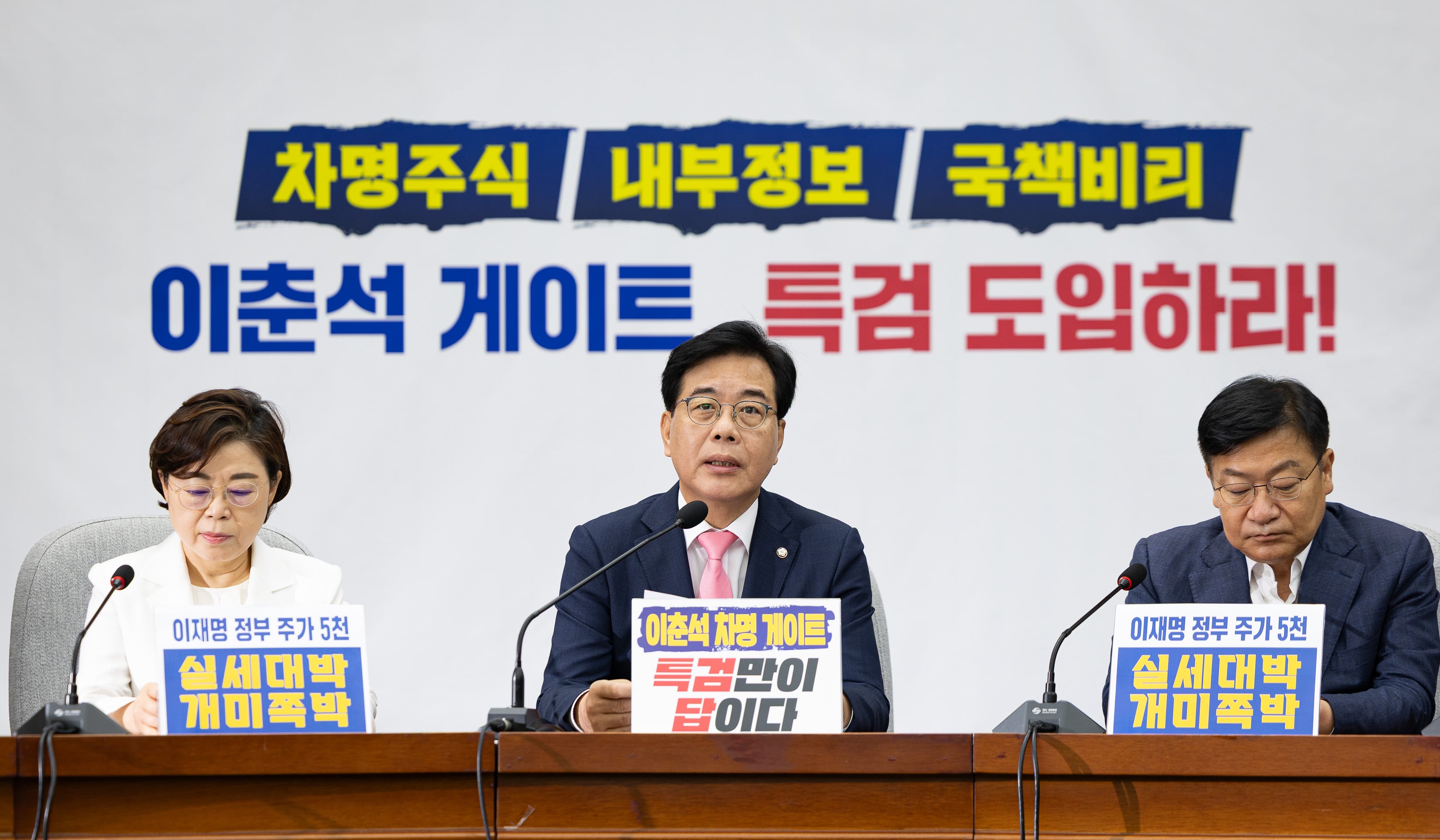 국민의힘 송언석 비상대책위원장 겸 원내대표는 이날 당 회의에서 “시중에는 이춘석 게이트가 아니라 국정위 게이트일지도 모른다는 말이 나오고 있다”며 “많은 국정위 관계자들이 내부 정보와 미공개 정보를 악용해 시세 차익을 누렸을 가능성이 있다”고 했다. 지난 6월 16일 출범한 국정위는 대통령직 인수위원회 격으로 김용범 대통령실 정책실장 등이 참여하고, 민주당 의원 5명이 부위원장, 분과위원장을 맡았다.