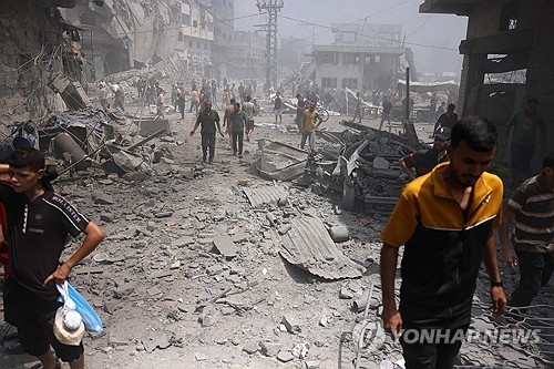 이스라엘 공습에 폐허 된 가자시티 남부 |