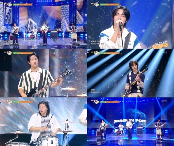 드래곤포니(안태규, 편성현, 권세혁, 고강훈)는 지난 8일 방송된 KBS2 '뮤직뱅크'에 출연해 디지털 싱글 '지구소년' 무대를 선사했다.