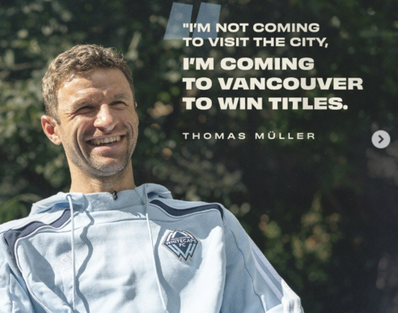밴쿠버 유니폼 입은 토마스 뮐러. 사진 밴쿠버 SNS |