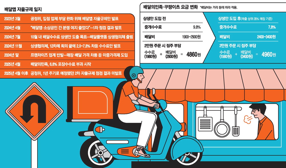 민간 주도의 배달앱 자율규제는 수수료 문제 등 소상공인 부담 경감이라는 핵심 쟁점이 해결되지 않은 채 배달앱의 선의에 기대 실효성 없는 점검만 반복하면서 별다른 성과를 거두지 못했다. 우여곡절 끝에 나온 배달수수료 상생안은 반쪽짜리라는 평가를 받았고, 포장수수료 부과 문제 등 논란만 더욱 커졌다.