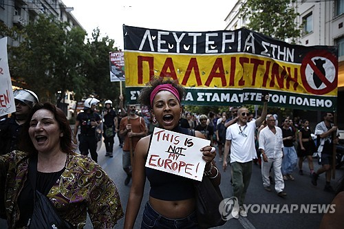 독일 매체 RND 등에 따르면 10일(현지시간) 그리스 수도 아테네와 산토리니섬·크레타섬·로도스섬 등 77곳에서 이스라엘의 군사작전에 반대하는 시위가 열렸다.