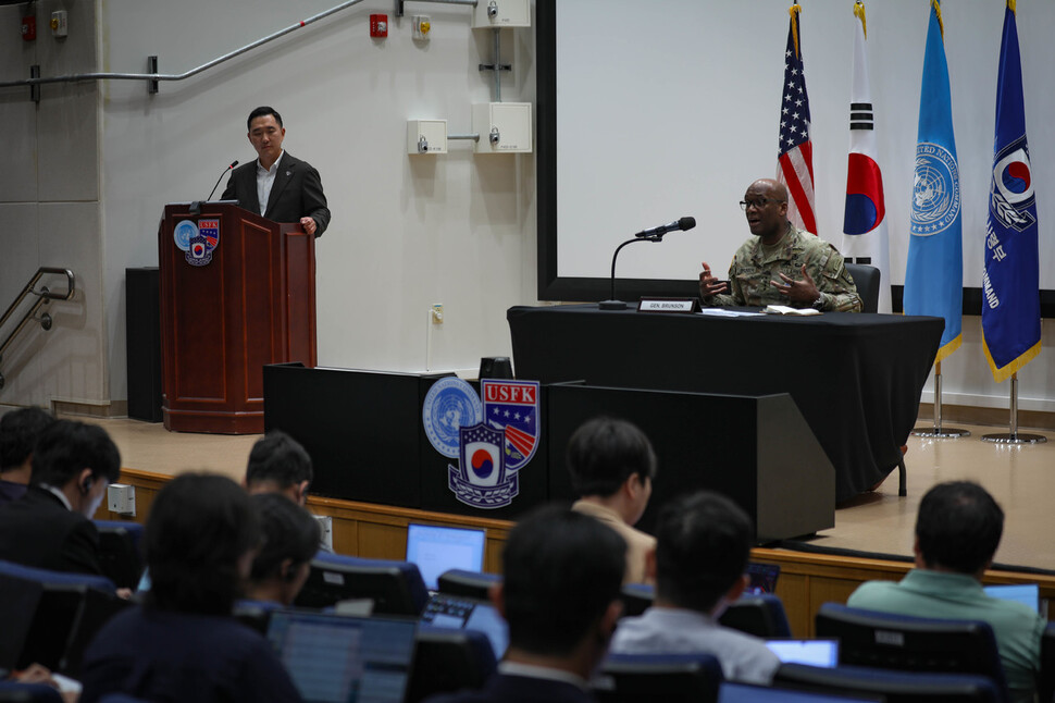 제이비어 브런슨 주한미군사령관이 지난 8일 경기 평택 캠프 험프리스에서 국방부 출입기자들과 인터뷰를 하고 있다. 주한미군사령부 제공 |