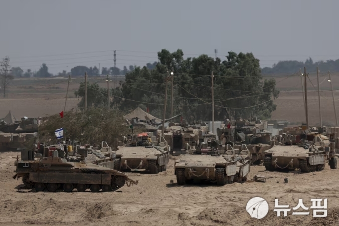 [가자지구 로이터=뉴스핌] 장일현 특파원 = 이스라엘 군용 차량들이 10일(현지시간) 팔레스타인 가자지구 국경 근처에 집결해 있다. 이스라엘은 최근 가자지구 북부 최대 도시인 가자시티에 대한 군사적 점령을 공식화했다. 2025.08.10. ihjang67@newspim.com |