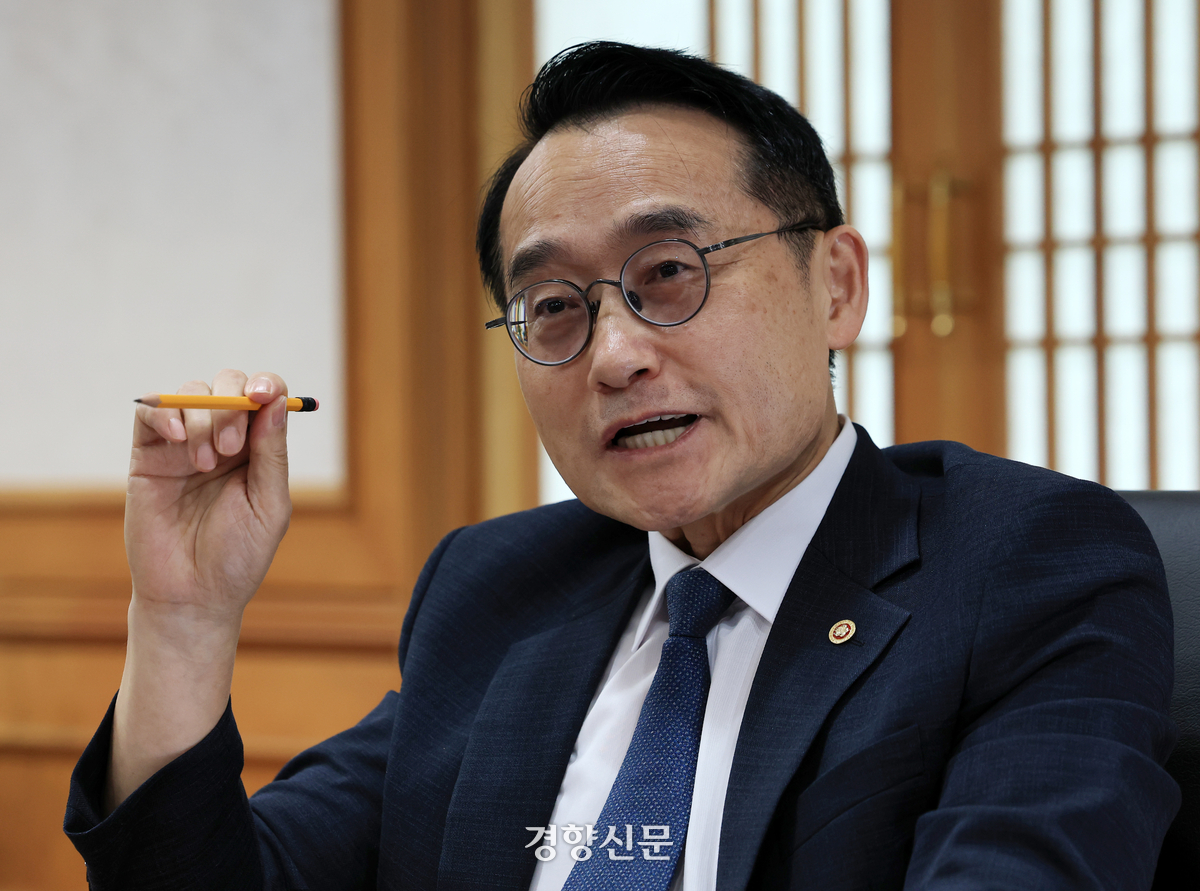 허철훈 신임 중앙선거관리위원회 사무총장이 지난 8일 경기 과천시 중앙선관위 청사에서 경향신문과 인터뷰를 하고 있다. 서성일 선임기자 |