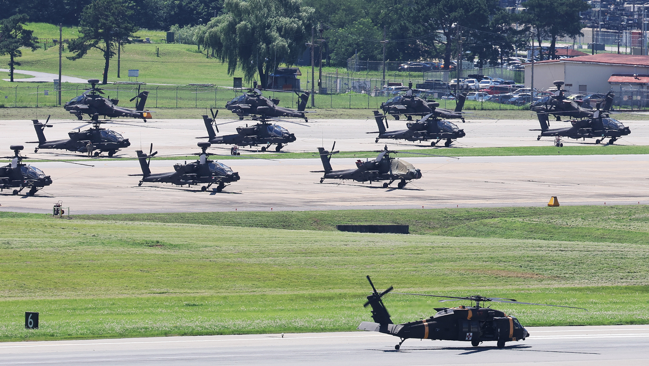 한국과 미국이 유사시 한반도 방어를 위한 정례 연합훈련인 ‘을지 자유의 방패’(UFS·Ulchi Freedom Shield) 연습을 이달 18∼28일 실시한다고 밝힌 7일 경기도 평택시 캠프 험프리스에서 블랙호크 헬기가 이동하고 있다. [연합뉴스] |