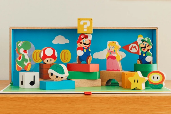 또한 이번 신제품 라인업에는 마리오 테마의 봉제 인형, 어린이용 식기, 치아발육기, 의류, 그리고 마리오 얼굴이 포함된 보드북 등도 포함됐다. 특히 나무로 제작된 마리오 빌딩 블록 세트가 눈길을 끈다. 3개 블록(마리오, 버섯, 물음표 블록)으로 구성된 세트는 2980엔(약 20달러), 30개 블록(루이지, 피치, 요시)이 포함된 확장 세트는 1만9980엔(약 135달러)로 출시된다. 이 블록들은 아미보(Amiibo) 기능을 지원해 스위치에서도 사용할 수 있다.