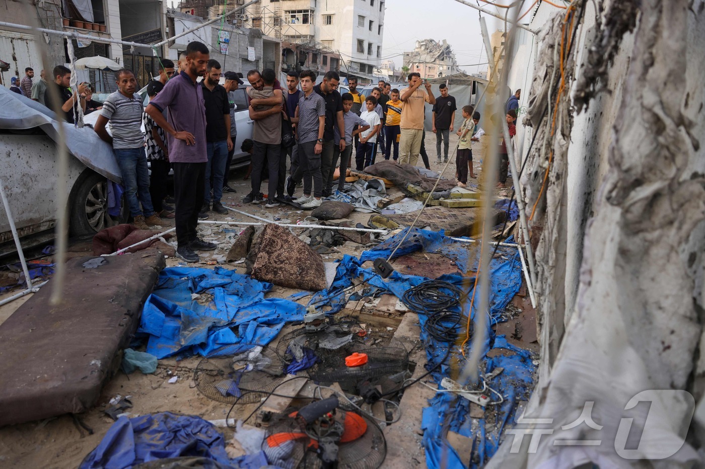 (가자시티 AFP=뉴스1) 권영미 기자 = 11일(현지시간) 팔레스타인 주민들이 이스라엘군의 야간 공습 이후 파괴된 가자시티 알시파 병원 내 알자지라 방송 텐트를 살펴보고 있다. 카타르 국영 방송 알자지라는 이날 성명을 통해 자사 기자 5명이 이스라엘의 공습으로 사망했으며, 이 중에는 저명한 보도 기자도 포함돼 있다고 밝혔다. 이스라엘군은 성명을 통해 알자지라 소속 기자 아나스 알샤리프를 겨냥한 공격이었다고 인정하며, 그가 하마스와 연계된 “테러리스트”라고 주장했다.2025.08.11. ⓒ AFP=뉴스1