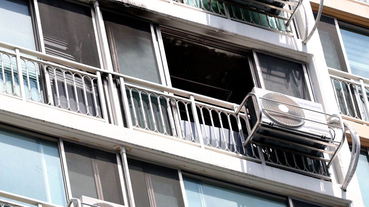 ▲ 10일 대구 동구 한 아파트 베란다 유리창이 방화로 의심되는 화재로 인해 파손돼 있다.
