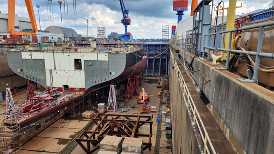 지난 7월16일(현지시간) 미국 펜실베이니아주 필라델피아에 위치한 '한화필리십야드'의 도크에서 미국 정부가 발주한 선박이 한창 건조되고 있다. 필리조선소는 한화그룹이 지난해 12월 인수한 미국 조선사다. 필라델피아=강태화 특파원 |