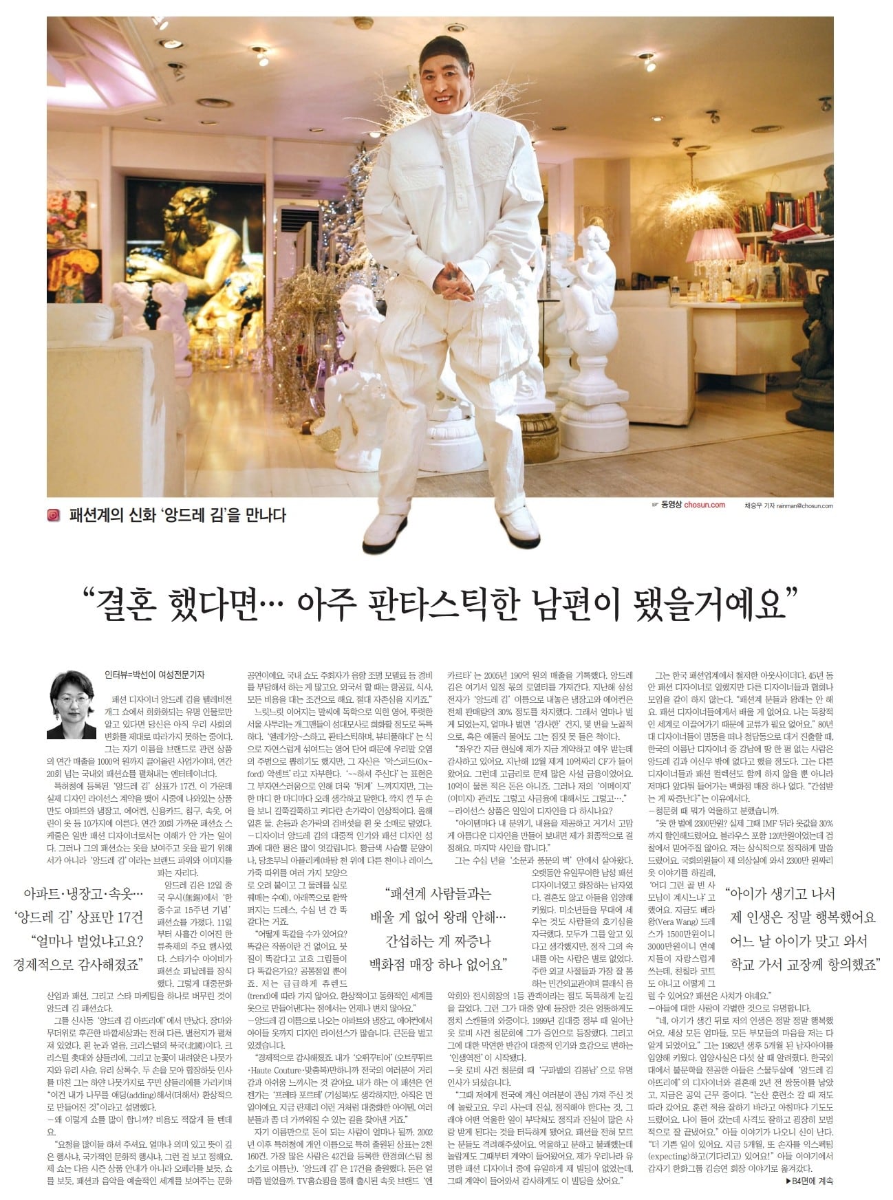 2007년 7월 7일자 주말판 앙드레 김 인터뷰 |