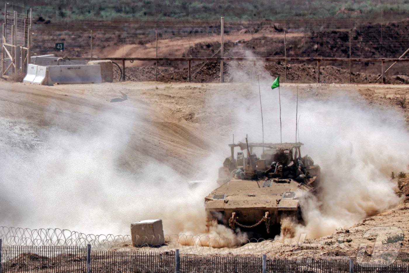 이스라엘 남부 가자지구 접경 지역의 한 군사 거점에서 이스라엘군 보병 전투 차량(IFV)이 먼지를 일으키며 이동하고 있다. 2025.07.23. ⓒ AFP=뉴스1 ⓒ News1 윤다정 기자 |