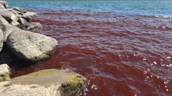 붉은빛의 원인은 '녹조류'…인체에 무해