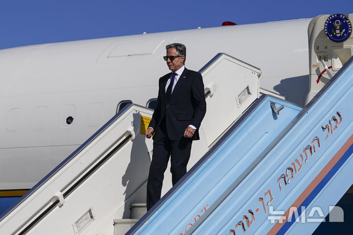 [텔아비브=AP/뉴시스] 토니 블링컨 미국 국무장관이 재임 시절이던 지난해 10월22일(현지시각) 이스라엘 텔아비브에 도착해 전용기에서 내리고 있다. 2025.08.12. |