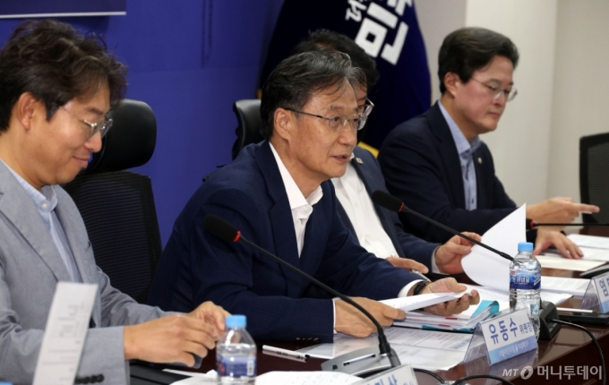 [서울=뉴시스] 조성봉 기자 = 유동수 더불어민주당 물가대책TF 위원장이 11일 오후 서울 여의도 국회 의원회관에서 열린 더불어민주당 물가대책TF-식품업계 간담회에서 발언을 하고 있다. 2025.08.11. suncho21@newsis.com /사진=조성봉 |