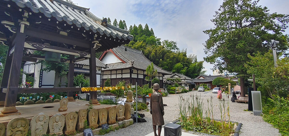 일본 사찰이 번화가나 그 인근에 자리 잡은 이유는 사찰이나 신사를 중심으로 자연스럽게 마을이 발달하는 ‘사전촌락(寺前村落)’이라는 독특한 개념 때문이다. 실제 일본에서는 대규모 사찰을 찾는 참배객들을 대상으로 하는 숙박 및 판매시설 등이 입구 주변에 들어서면서 마을이 형성되는 경우가 많았다. 심지어 유곽이 들어서기도 했는데, 군산 동국사도 동쪽에 있는 명산시장 일대가 일제강점기 군산 최대의 공창(公娼) 지역이었다.