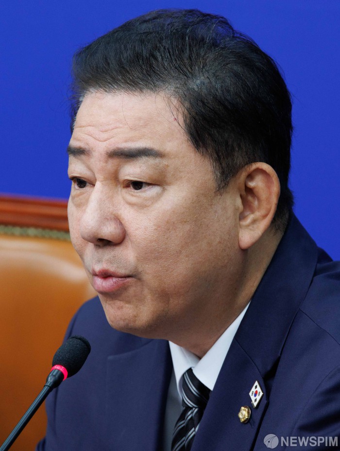 [서울=뉴스핌] 윤창빈 기자 = 김병기 더불어민주당 원내대표가 13일 오전 서울 여의도 국회에서 열린 최고위원회의에서 모두발언을 하고 있다. 2025.08.13 pangbin@newspim.com