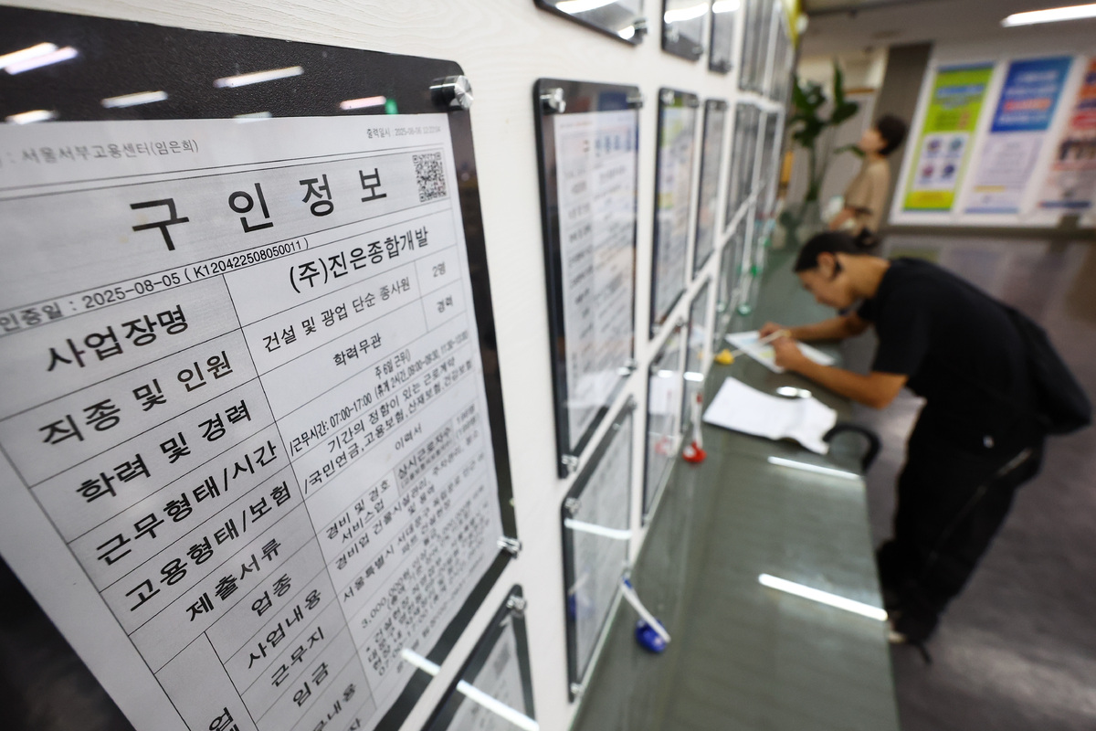 13일 서울 마포구 서부고용복지플러스센터를 찾은 구직자가 서류를 작성하고 있다. 통계청이 이날 발표한 '2025년 7월 고용동향'에 따르면 지난달 취업자 수는 2902만9000명으로 지난해 같은 기간보다 17만1000명(0.6%) 증가했으나, 15~29세 고용률이 15개월째 하락세를 이어가는 등 청년층 취업난도 지속되고 있다. 뉴시스 |