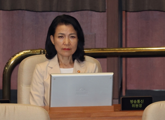 이진숙 방송통신위원장이 5일 오후 서울 여의도 국회에서 열린 제427회 국회(임시회) 제3차 본회의에서 김장겸 국민의힘 의원의 방송문화진흥회법 일부개정법률안(대안)에 대한 무제한토론(필리버스터)을 지켜보고 있다./사진=뉴시스 |