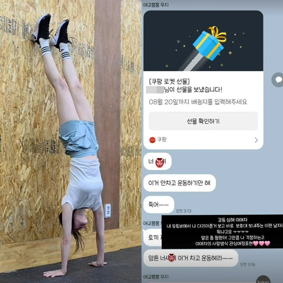 공개된 사진 속에는 성해은이 지인으로부터 카톡 선물하기를 통해 운동 시 필요한 보호대를 갑작스레 선물 받은 모습. 특히 성해은은 발신인에 대해 "말은 좀 험한데 그만큼 나 걱정하는고. 이 여자의 사랑 방식, 관심, 애정 표현"이라며 분홍색 하트 3개를 붙여 고마움을 표했다.