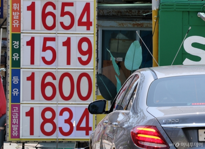 미국의 이란 핵 시설 공습 소식이 전해진 22일 오후 서울 중구의 주유소에서 한 차량이 기름을 넣기 위해 대기하고 있다. /사진=뉴시스 |