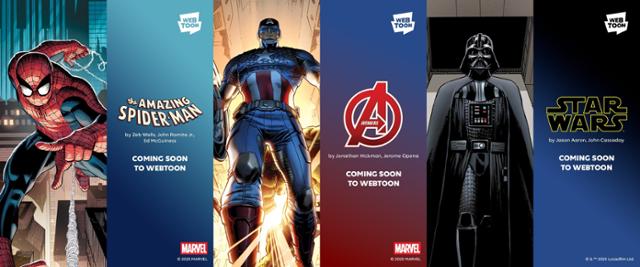 네이버웹툰의 미국 본사 웹툰 엔터테인먼트(웹툰 엔터)는 디즈니와 글로벌 콘텐츠 파트너십을 체결한다고 13일 밝혔다. 이에 따라 마블, 스타워즈 등 100편에 달하는 시리즈가 세로 스크롤 방식의 웹툰으로 제작된다. 8월 말 '어메이징 스파이더맨'을 시작으로 차례로 작품을 공개할 예정이다. 네이버웹툰 관계자는 "디즈니·마블 등 신규 오리지널 웹툰 시리즈도 준비 중"이라고 했다. 정확한 가격 정책은 공개되지 않았지만 한국 네이버웹툰과 똑같이 초반 일부 에피소드는 무료, 이후에는 유료 결제 방식으로 운영될 예정이다.