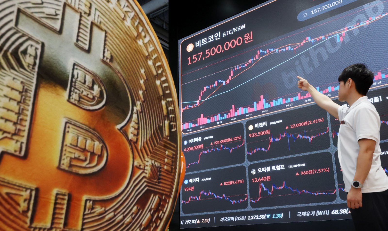 이달 11일 서울 강남구 빗썸라운지에 전광판에 비트코인 등 가상화폐 시세가 나오고 있다. 뉴시스 |