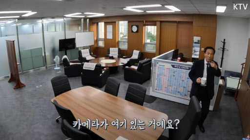정무수석실 내부 카메라를 발견한 우 수석 (이재명 대통령 유튜브 캡처) |