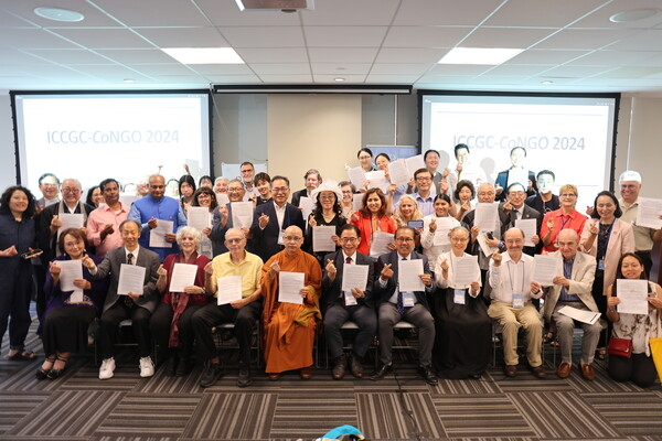 종교연합 세계시민회의(ICCGC-CoNGO) 참가자들이 기념촬영을 하고 있다. 원불교 제공 |